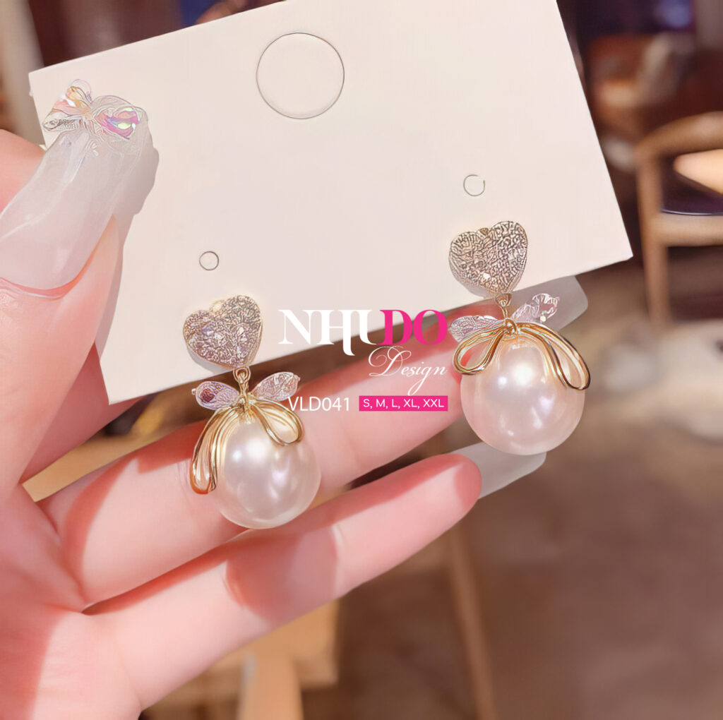 VLD041 là sự kết hợp tinh tế giữa vẻ đẹp sang trọng và nét đáng yêu đầy duyên dáng. Thiết kế nổi bật với phần hoa văn trái tim ánh kim lấp lánh, kết hợp cùng viên ngọc trai tròn đầy, tạo nên tổng thể hài hòa, tinh xảo. Những chi tiết kim loại uốn lượn mềm mại tựa như cánh bướm bay bổng, mang lại vẻ nữ tính, dịu dàng nhưng vẫn không kém phần thanh lịch.