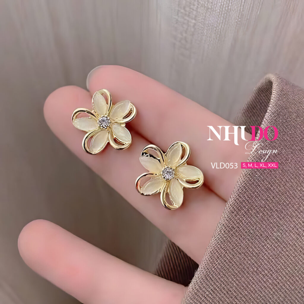 VLD053 là mẫu khuyên tai thiết kế lấy cảm hứng từ những cánh hoa mềm mại, mang đến vẻ đẹp thanh lịch và nữ tính. Được chế tác từ hợp kim ánh vàng sang trọng, kết hợp với lớp men trong suốt và điểm nhấn đá lấp lánh, khuyên tai này giúp tôn lên nét rạng rỡ, cuốn hút cho người đeo. Dễ dàng kết hợp với nhiều phong cách, từ trang phục nhẹ nhàng đến sang trọng.